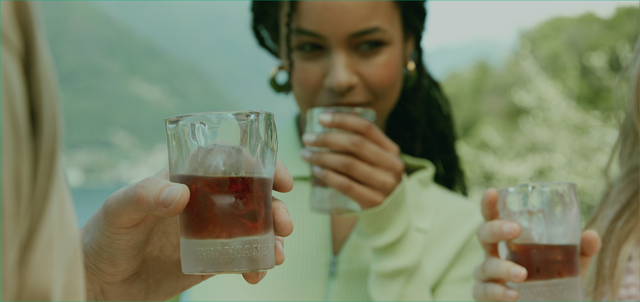Improvvisamente la tua mano entra in contatto con il bicchiere di Brancamenta ghiacciato.